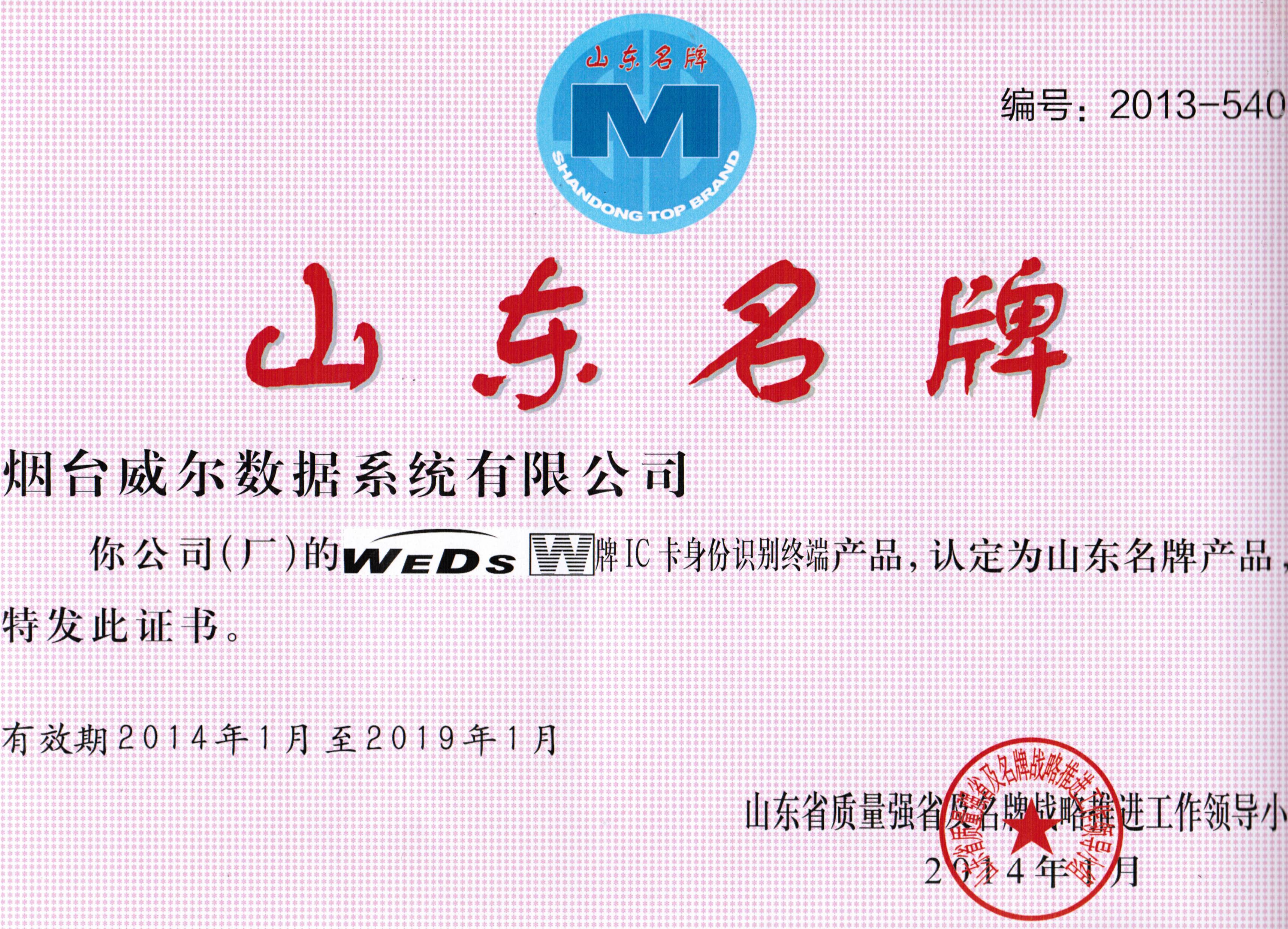 熱烈慶祝威爾“IC卡身份識(shí)別終端產(chǎn)品”榮獲2013年“山東省名牌產(chǎn)品”;“物聯(lián)網(wǎng)身份識(shí)別終端及行業(yè)應(yīng)用”榮獲2013年“山東省服務(wù)名牌”。