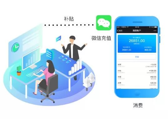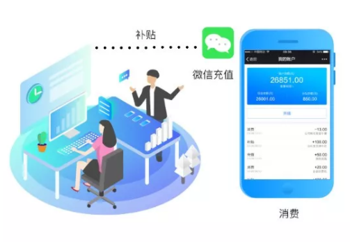 公司可以直接通過微信支付自動充值,員工打開手機即可支付,即時到賬方便員工隨時使用,通過該功能員工可以隨時查詢充值與消費情況,各資金流向一目了然。