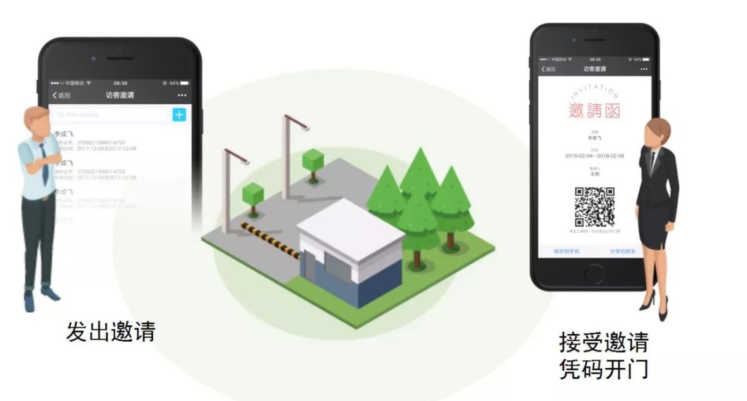 在手機端可以對來訪人員進行登記,并對客戶的訪問時間和訪問區(qū)域進行限制,受訪人員可以憑借邀請函掃碼開門,無需登記和等待,同時在后臺可以生成記錄備份,以便以后需要時查看。