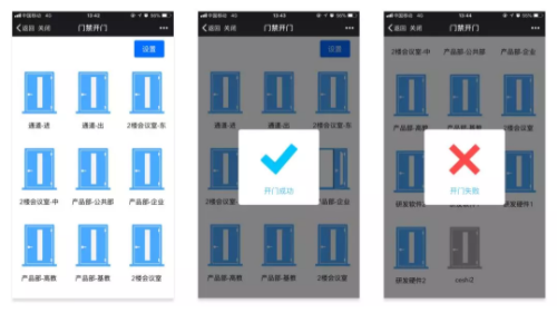 客戶端的門禁開門功能會顯示本員工權(quán)限下的所有門禁,點擊門禁即可完成開門操作,使得員工完全擺脫員工卡的束縛,進一步提升員工幸福感。