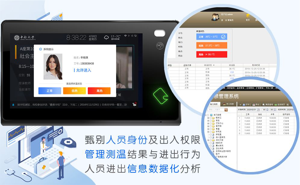 體溫上報(bào):終端構(gòu)建體溫狀態(tài)登記功能,在識(shí)別成功后,可根據(jù)溫槍結(jié)果對(duì)人員體溫狀態(tài)進(jìn)行登記,輕松達(dá)成人、溫合一,進(jìn)而滿足各方管控要求。