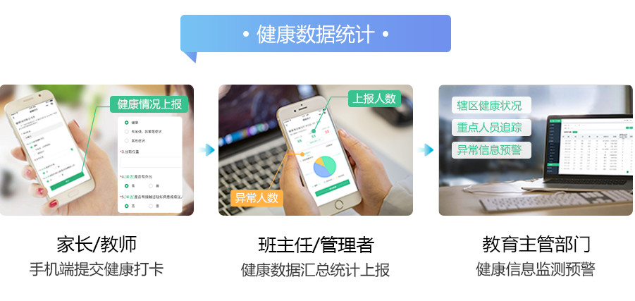 學校作為一個高密度人群的場所,錯失一個微小細節(jié),都會造成“抗疫”戰(zhàn)線的全面潰敗。對此,國務院明確提出,教育系統(tǒng)疫情防控必須覆蓋三個環(huán)節(jié):開學前、開學返校過程和開學后。威爾健康監(jiān)測管理系統(tǒng),可以幫助學校建立響應三個階段的智能化防控能力,面向未來建設(shè)常態(tài)化、智能化的校園公共衛(wèi)生應急防控機制。