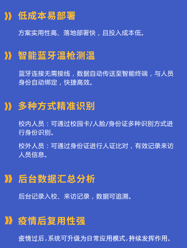 為助力學(xué)校合規(guī)復(fù)課,威爾數(shù)據(jù)推出疫情防控校園出入解決方案,身份識(shí)別+智能測(cè)溫,進(jìn)一步保障教職工、師生健康安全。