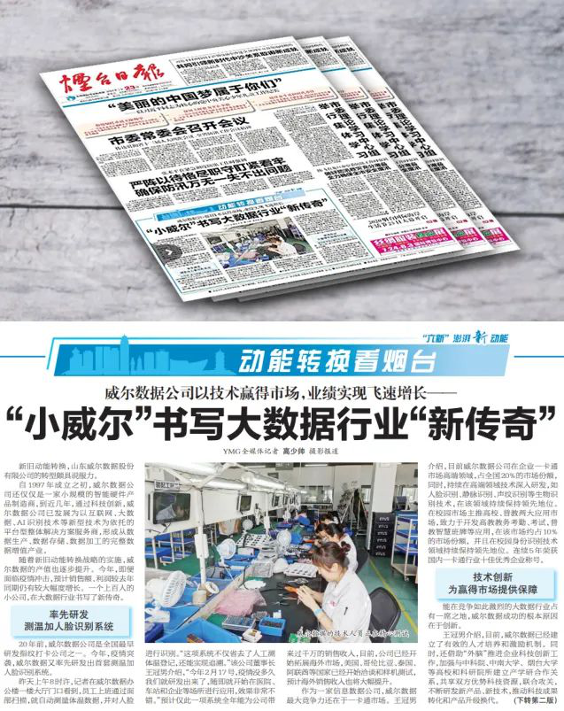 今日,山東威爾數(shù)據(jù)登上煙臺(tái)日?qǐng)?bào)頭版,大小新聞媒體也同步報(bào)道。