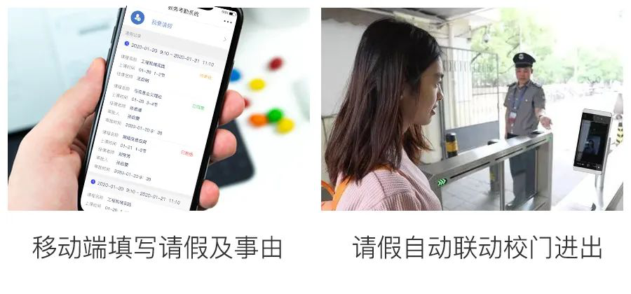 如需出校,則可通過移動端填寫請假申請和具體事由,審批通過后,請假情況可自動與校門口的門禁通道系統(tǒng)聯(lián)動,實現(xiàn)請假時段內(nèi)自由出入,無需安保人員進(jìn)行再次確認(rèn),有效減輕工作壓力、提升運維效率。