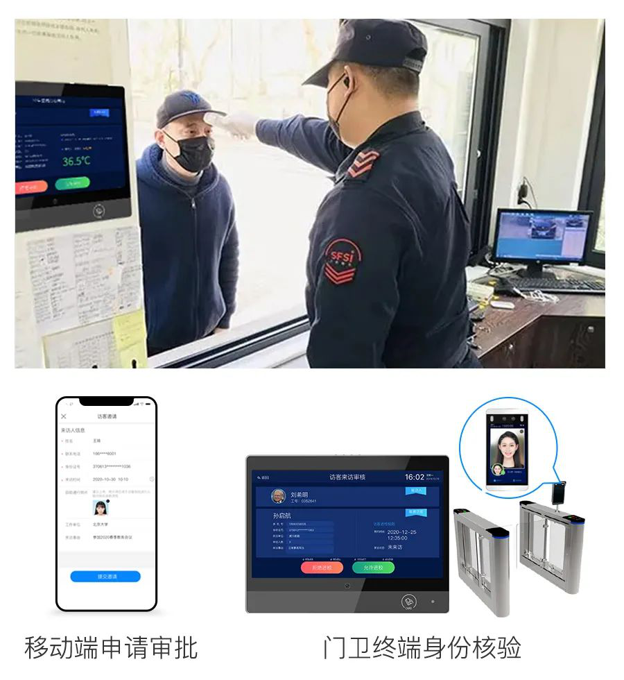 訪客可通過移動端的訪客邀請、申請審批等功能,填寫訪客基本信息及來訪事由,審批通過后,訪客在校門口識別終端通過人臉識別進(jìn)出,且記錄可查可追溯。