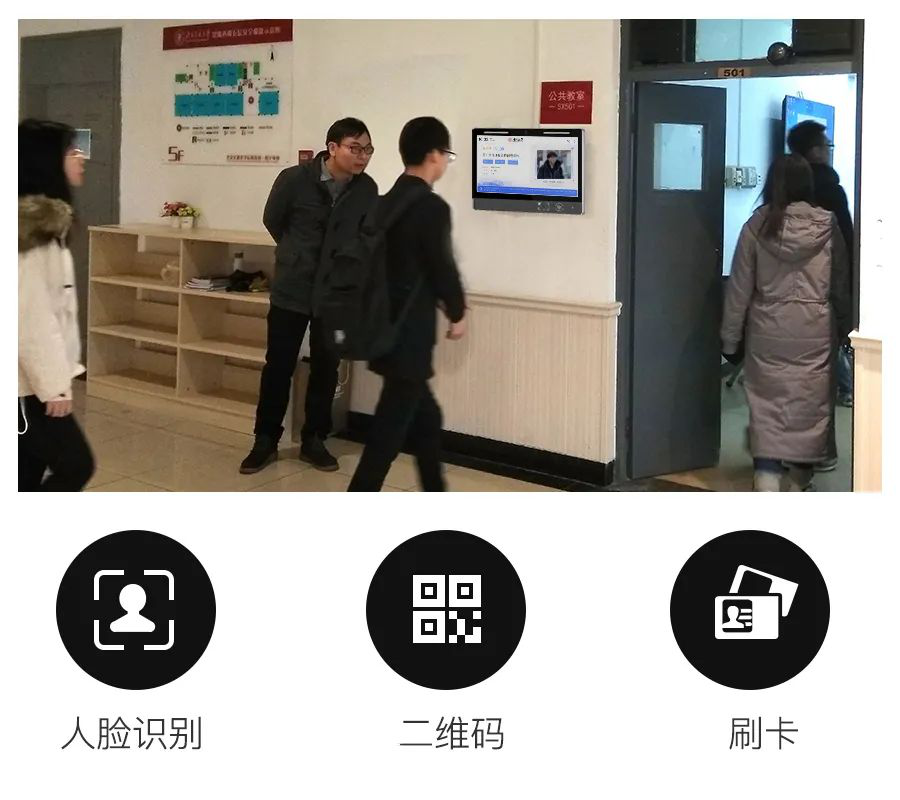 可以在教室門口終端部署課程簽到電子班牌系統(tǒng),學(xué)生通過人臉識別、刷卡、掃碼等方式進(jìn)行課程簽到,并聯(lián)動請假記錄,可有效監(jiān)測教學(xué)樓宇人員密度,嚴(yán)防曠課等安全隱患。