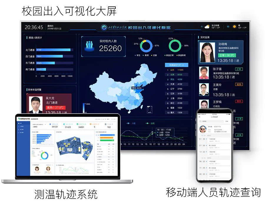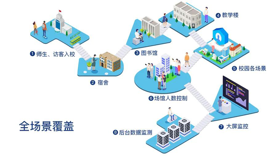 一是要實現(xiàn)方案的全場景部署。針對圖書館、辦公樓、體育館等其他校內(nèi)出入場所,均進(jìn)行身份識別+測溫方案部署,準(zhǔn)確記錄人員體溫及進(jìn)出數(shù)據(jù),實現(xiàn)校內(nèi)全場景覆蓋。