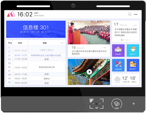 中控聯(lián)動:班牌可進行多媒體設備的供電控制,并根據(jù)課程安排自動匹配人員啟用權限。