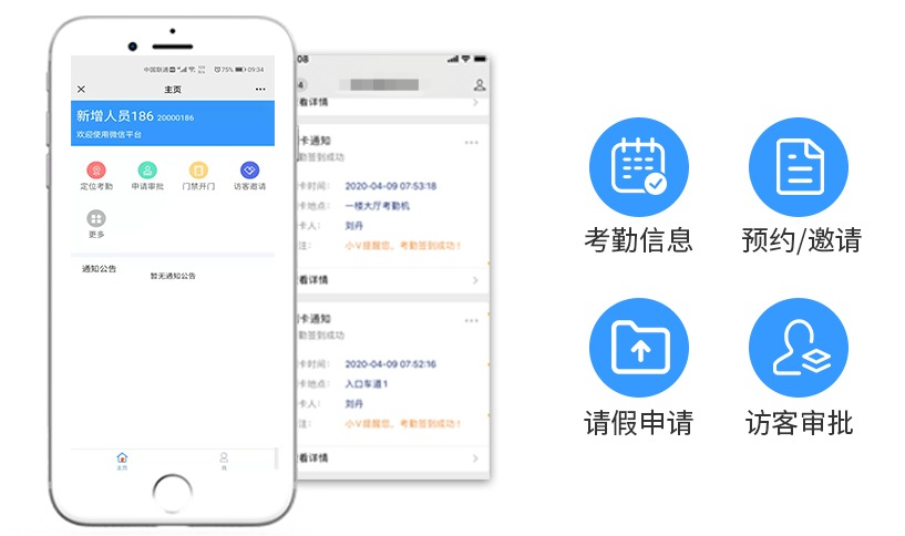 各類資源均由平臺統(tǒng)一管理智能授權,移動端實時推送考勤、門禁、訪客預約邀請及請假等各類審批結果,打造“零跑腿”智慧企業(yè)管理環(huán)境。