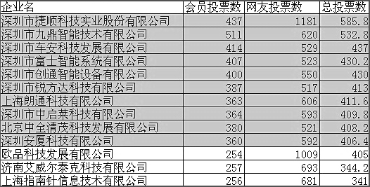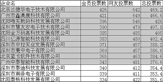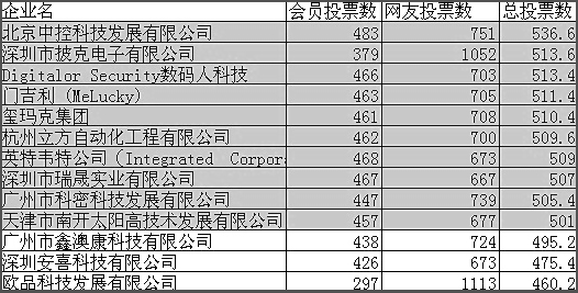 “2010中國(guó)一卡通百?gòu)?qiáng)企業(yè)之十大門禁企業(yè)” 投票數(shù)據(jù):