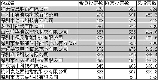 “2010中國(guó)一卡通百?gòu)?qiáng)企業(yè)之十大讀寫器企業(yè)”投票數(shù)據(jù):