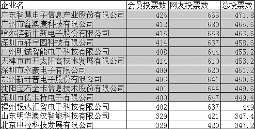 “2010中國(guó)一卡通百?gòu)?qiáng)企業(yè)之十大智能卡企業(yè)” 投票數(shù)據(jù):