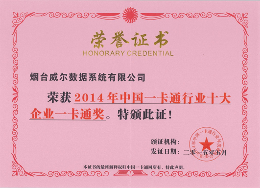 由中國(guó)一卡通網(wǎng)主辦的“2014(第五屆)中國(guó)一卡通行業(yè)年度評(píng)選”活動(dòng)結(jié)果正式揭曉。山東威爾數(shù)據(jù)股份有限公司在此次評(píng)選中脫穎而出,憑借雄厚的實(shí)力和較旺的人氣榮獲“2014年中國(guó)一卡通行業(yè)十大企業(yè)一卡通獎(jiǎng)”和“2014年中國(guó)一卡通行業(yè)十大最受用戶歡迎品牌”兩項(xiàng)大獎(jiǎng)。