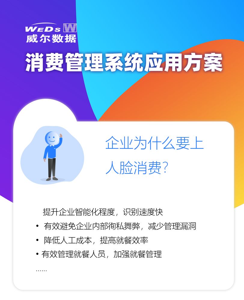 威爾消費(fèi)管理系統(tǒng)主要是指員工在餐廳就餐、指定場所消費(fèi)、充值等場景下,通過卡、二維碼、指紋、人臉識別進(jìn)行身份驗證,對相應(yīng)的關(guān)聯(lián)賬戶信息進(jìn)行扣費(fèi)、充值的系統(tǒng)。