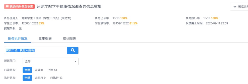 疫情爆發(fā)正值寒假,近15000名師生員工散布全國(guó)各地。為及時(shí)、準(zhǔn)確、有效地掌握人員健康、去向動(dòng)態(tài),并向其傳達(dá)學(xué)校疫情防控的要求與信息,河池學(xué)院搭建起疫情防控信息平臺(tái),教師與學(xué)生在線即可進(jìn)行信息采集。
